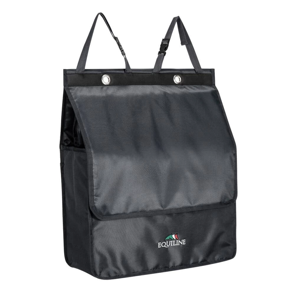 The Holder Slim accessory bag by Equiline combines a chic look with many functional features. It is made of a water-repellent, synthetic material and has practical dividers to store stable accessories. The accessory bag is particularly narrow and is also ideal for tournaments, as you can quickly and easily stow and transport things. The bag is closed with two strong Velcro fasteners. All around, the accessory bag is ideal for keeping things tidy in the stable or at the show.