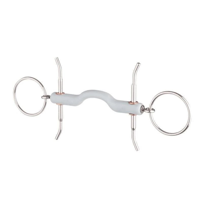 Fulmer bridles are a special sub-form of the thigh bridles and therefore benefit from their advantages. The lateral legs effectively prevent pulling through the mouth, in addition the legs offer a calm and stable position in the mouth, which provides lateral hold and limitation. The plastic bar, made of Beris plastic, lies particularly quietly in the mouth and allows even smoother and more comfortable communication. In contrast to pure thigh snaffles, the Fulmer snaffle offers a freely movable snaffle ring, which gives the bit a little more play and is therefore perfectly suitable for horses who prefer a more movable bit in the mouth. Fulmer Snaffles are ideal for horses that tend to lie on the bit or bite hard. The special feature here is the 30mm high, minimally flattened tongue arch, which is ideal for so-called “tongue players”. These horses tend to push their tongue over the bit, which is effectively avoided by the height of the arch and gives the tongue extra space under the bit.