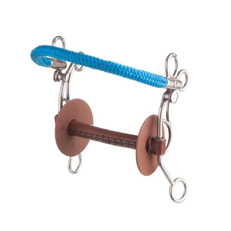 The tandem is unmistakably characterised by its strap, which rests on the most sensitive nasal bone. By accepting the rein, pressure is exerted on the nasal bone, the lower jaw and the neck. A slight pulling effect, i.e. the tilting and lifting of the bit, results when the rein pressure is increased, which is why this bit only belongs in an experienced and sensitive rider’s hand. The anatomically pre-formed leather bar adapts optimally to the anatomy of the horse’s mouth when wet, thus ensuring a high level of acceptance. As leather is a purely natural product, it shines with high acceptance and thus promotes chewing activity and salivation. The “Tandem” is suitable for horses that are too sensitive for a pure bit effect, but which cannot be ridden with a Hackamore alone.