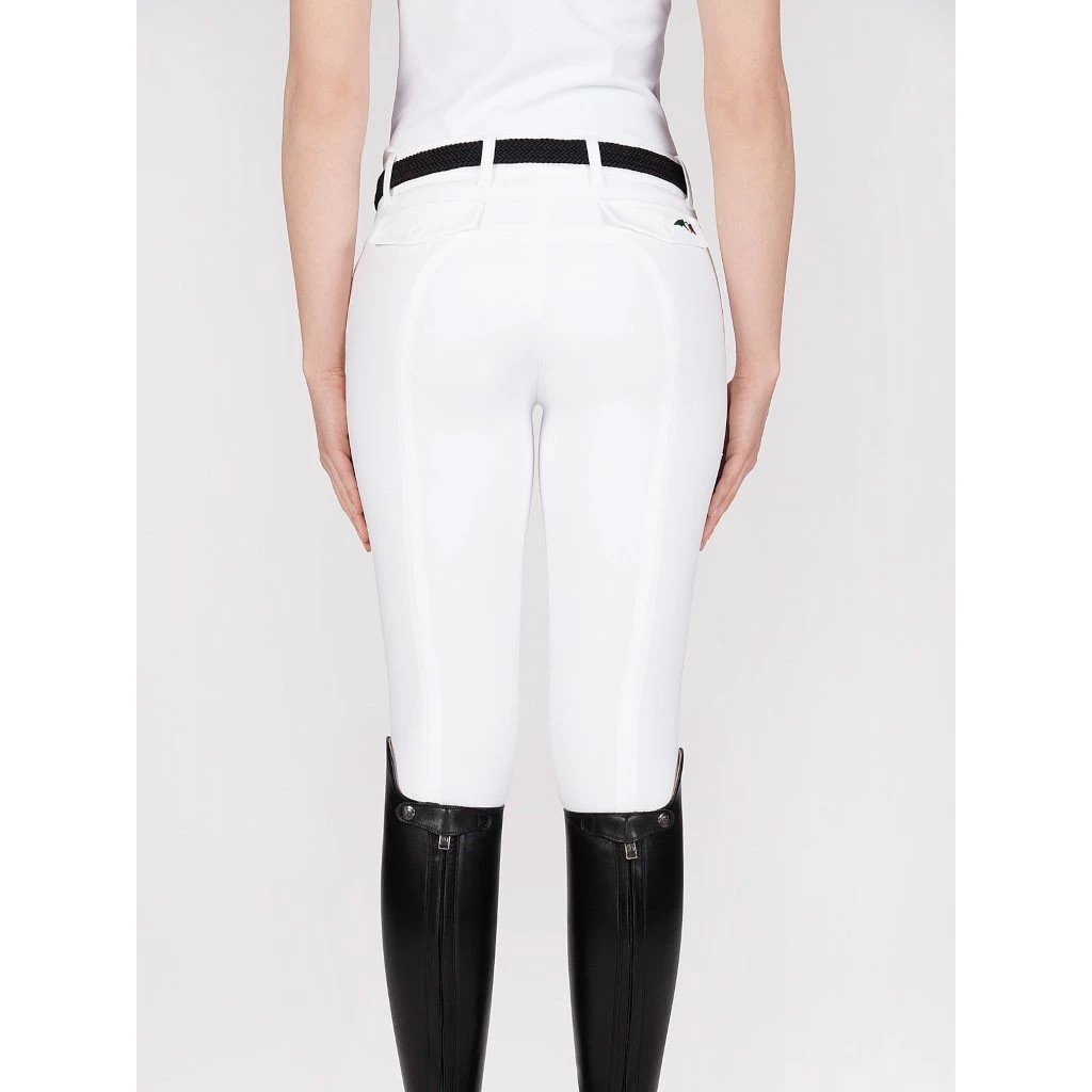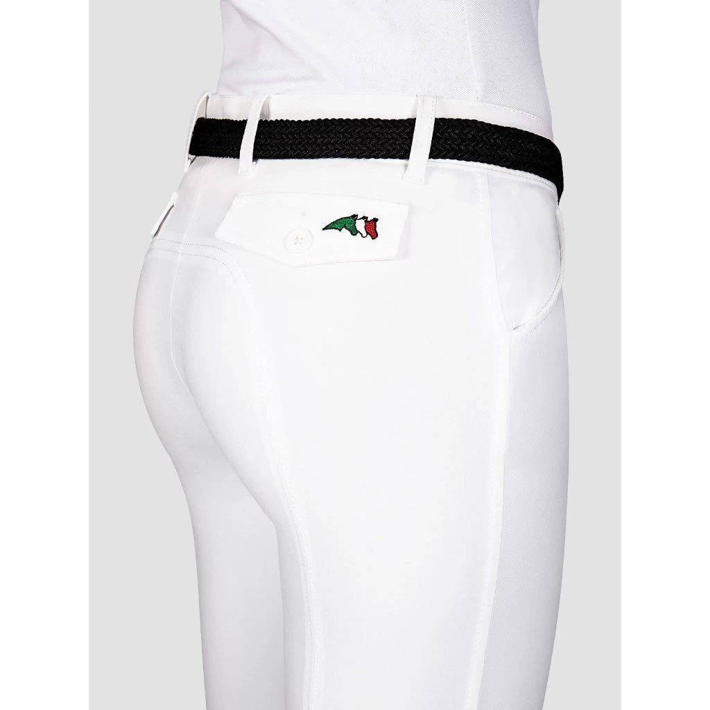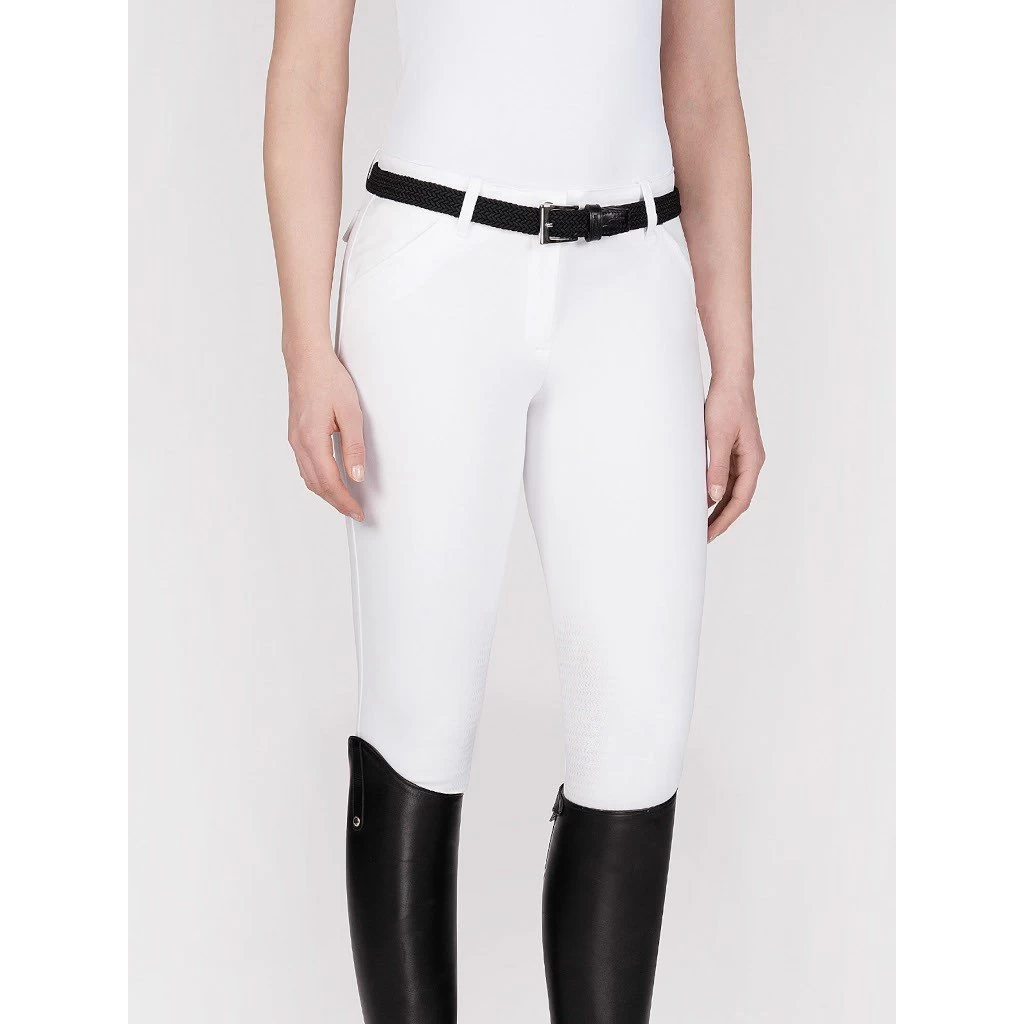 The breeches Bice by Equiline feature the Knee X-Grip, which guarantees a firm hold on the saddle. In addition, the breeches are ergonomically cut, have elastic leg cuffs and the stretch-fastening system keeps the breeches close-fitting at the legs, maximising comfort. The waist block system means that the breeches fit perfectly at the hips and ensure a secure fit for any competition shirt. Visually, the breeches impress with their new and fashionable design. This includes the two slit pockets on the front and the patch back pockets. The back pockets have a button and the right back pocket also has the Equiline logo. This gives the breeches their discreet yet elegant design. This makes the jodhpurs perfect for all kinds of riding and for every occasion.