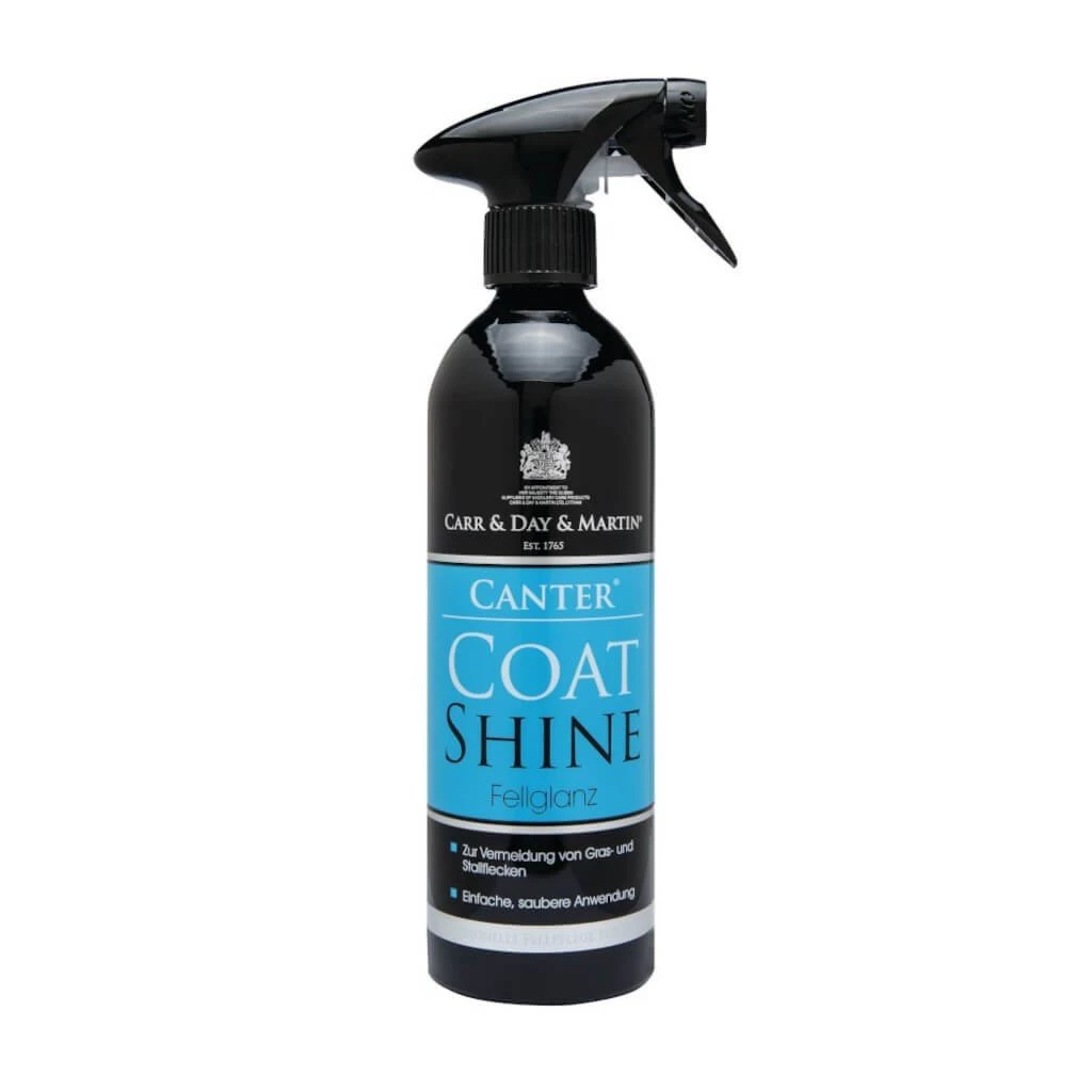 The Canter Coat Shine conditioner helps prevent soiling and gives coats a smooth, non-greasy, natural and long-lasting shine. This versatile product can be used to prevent grass stains and soiling of the coat, or applied to the chest and shoulder area to prevent chafing. The extra fine spray nebulizer makes the spray particularly easy to apply evenly.