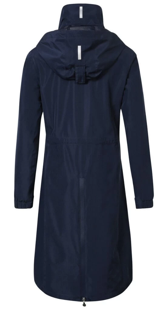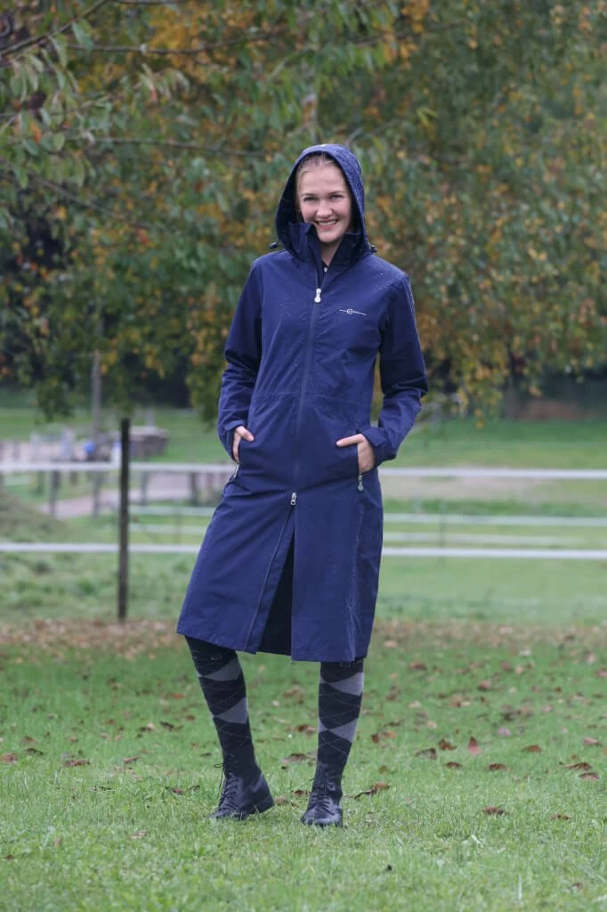 The raincoat for women by Covalliero comes from the spring/summer collection 2022. This raincoat is absolutely waterproof and keeps you dry in any weather, no matter how bad. Since the raincoat has a riding slit on the back, this is perfect for rides or when riding outside. With this coat not only the upper body stays dry and clean, but also the legs. At the same time, this coat is very light and breathable, which guarantees a high wearing comfort. Due to the elastic on the hood and Velcro on the sleeves, these are adjustable so that no water can penetrate. The seams and zippers are all covered and waterproof sealed, that even there wetness has no chance. Thus, even in the two outer pockets and in the inner pocket of the coat, all utensils that are taken along stay dry. The coat is provided with a few small reflective applications that you can still be seen in bad weather.