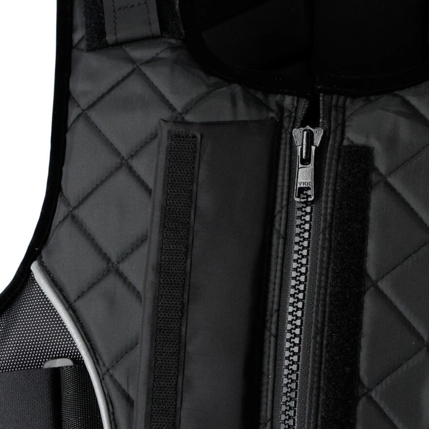 The safety vest ProtectoFlex light 315 Beta from Covalliero consists of a panel-like protective pad. The panel-like protective padding serves to provide maximum protection during impact and allows for a high level of wearing comfort. The double safety Velcro closure is used for easy and individual adjustment of the vest. Also the zipper supports an easy putting on and taking off of the vest. The cut, the material and the function guarantee optimal freedom of movement with the highest safety standard. Tested according to EN 13158, Level 3, BETA certified.