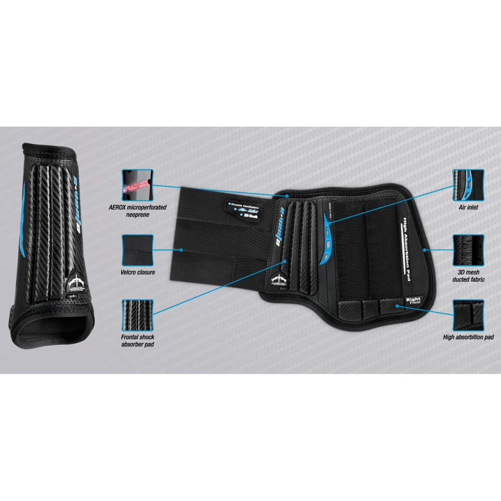 The Veredus Cross Country Boots E-Vento is ideal for all-round sports and leisure use. It is made of micro-perforated Aerox neoprene and is therefore particularly breathable. The 3D mesh fabric supports air circulation. This prevents overheating of the horse’s legs and tendons. The shock-absorbing protective padding protects the horse’s leg optimally from impact (e.g. at the jump).