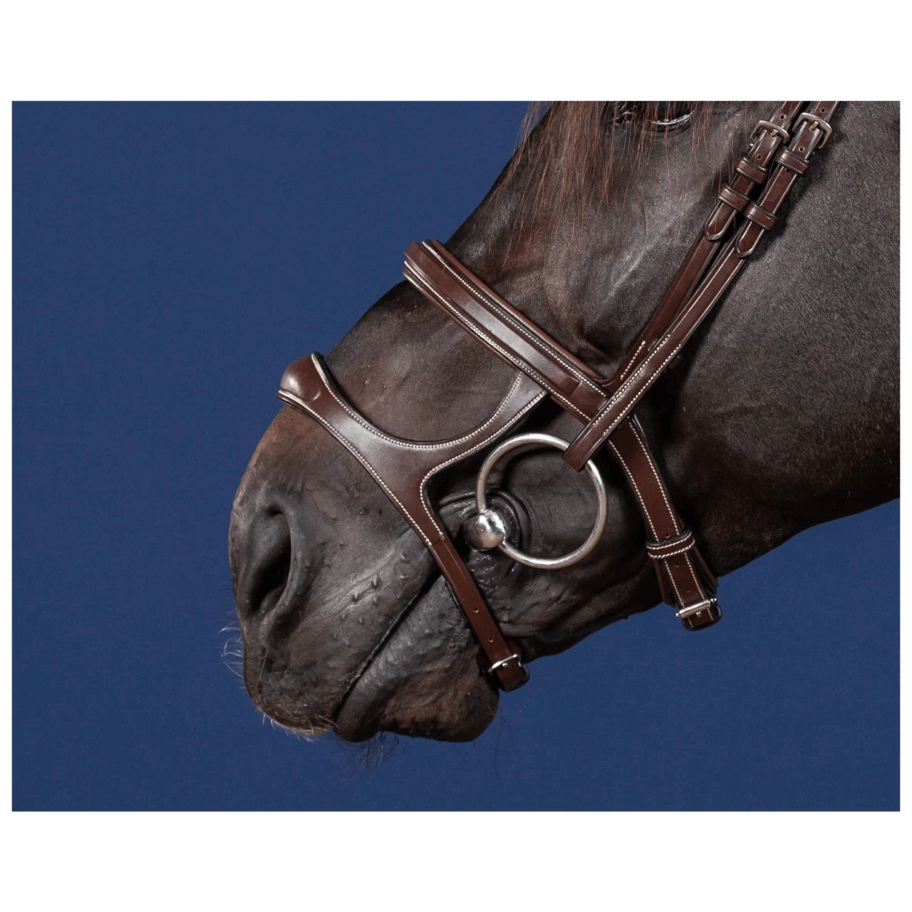 - the buckle of the English noseband is attached to a soft leather strap underneath
