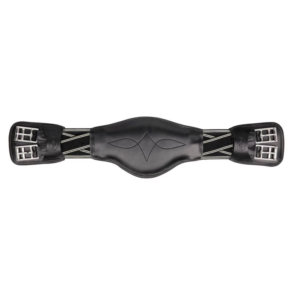 The E43 dressage girth by Prestige Italia is made of high quality leather. It also has double crossed elastic straps that keep the girth from slipping. The beautiful material and the great embroideries make this girth a real eye-catcher.