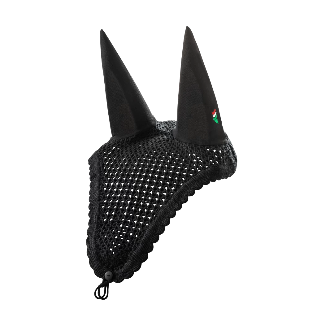 The Loop fly cap from the brand Equiline is a timeless, elegant and simple fly cap, which is crocheted from a mixed cotton. The fly cap is equipped with a strap which provides a firmer hold. With the help of this strap, the fly cap can be attached to the bridle. The ear piece is soft and elastic and thus fits comfortably. A small Equiline logo is attached to the left ear. The cotton fabric makes the fly cap breathable and ensures optimal air circulation, which at the same time protects against possible overheating.