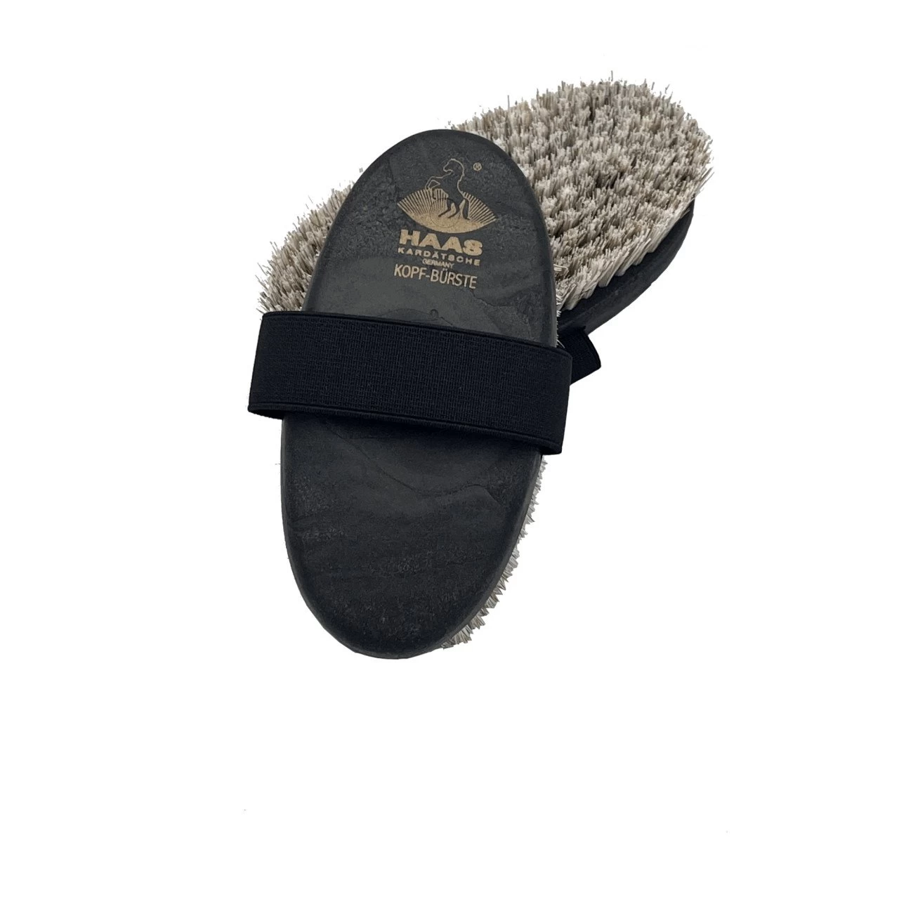 The head brush by Haas is perfect for sensitive areas of the horse. The size and the hand strap make this brush very handy. In addition, the brush has soft horsehair, which cares for the fur and gives it a healthy shine.
