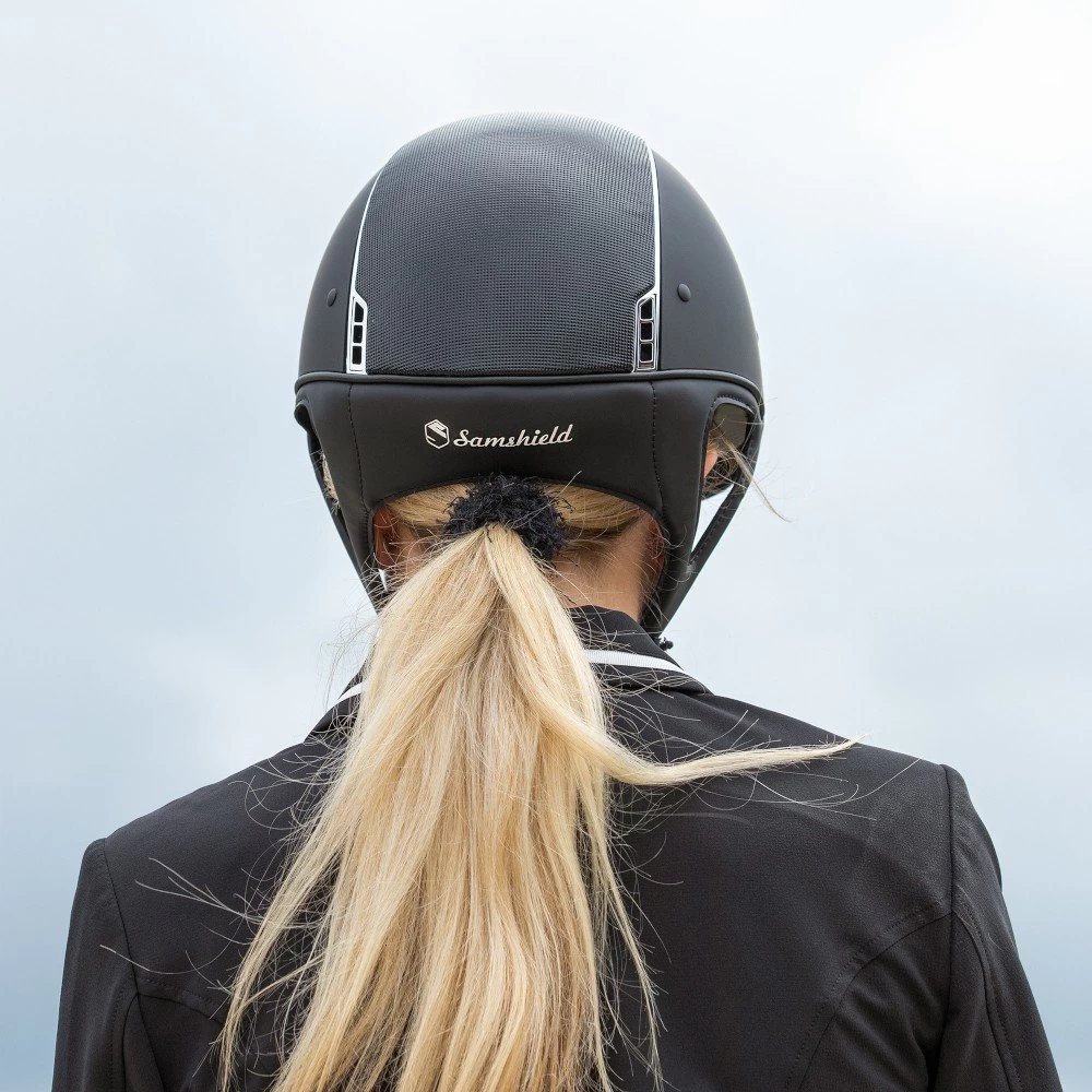 The Samshield riding helmet Classic Shadowmatt Shimmer is paired with maximum safety and perfect fit. The matt synthetic outer shell has an additional glossy shimmer top, which gives the helmet an elegant look. The material of the outer shell is made of robust and lightweight polycarbonate. This is additionally covered with a scratch-resistant matt lacquer. The innovative fit provides optimal protection, unprecedented lightness and perfect ventilation. The inner lining is easily replaceable with snap fasteners and washable. The riding helmet meets the EU standard VG1 01.40 2014-12. The outer shell is available in three sizes and can be combined with 4-5 inlay sizes each. The strap is equipped with a 3-point system and a click closure.