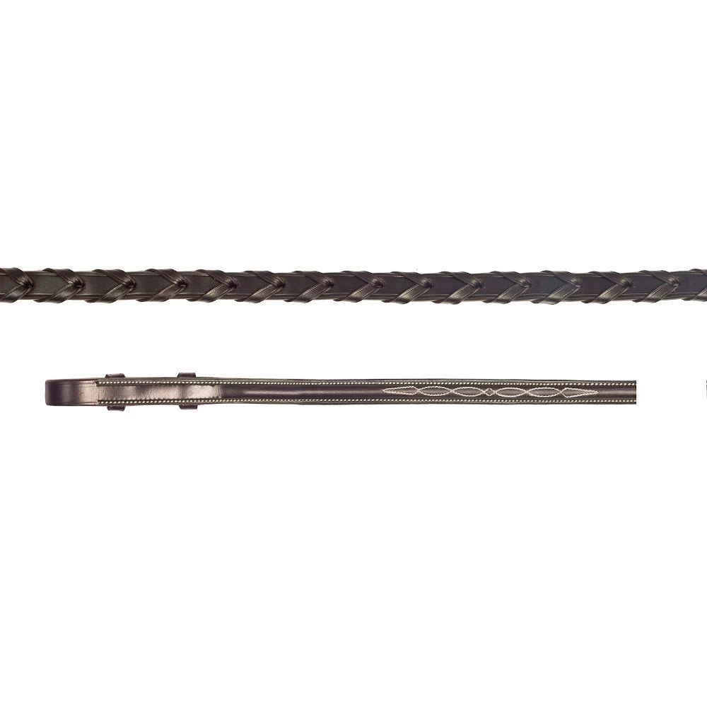 The Laced Fancy reins by Schockemöhle Sports looks particularly beautiful. It is made of quality leather, which is very sturdy and ensures a long life. Both the braided look and the discreet embroidery highlights on the ends of the reins make them a real eye-catcher. The bridle hooks make attaching and detaching easy and effective and are also visually beautiful. Thanks to the 17 mm width, the rein fits the hand comfortably.