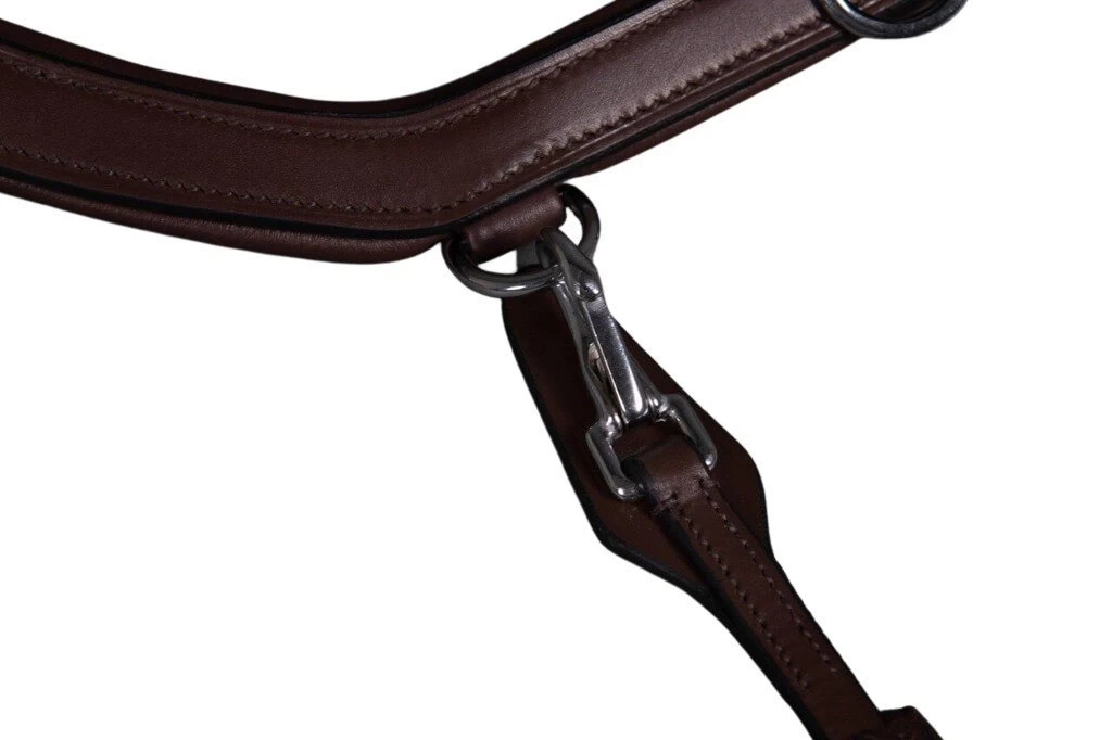 The PresTeq noseband has a special shape. This prevents pressure points on sensitive areas of the horse’s face. The shape of the noseband is chosen so that the horse can breathe ideally. The noseband avoids the nose bone and bypasses the nostrils. To distribute the pressure, a gel padding is integrated. A special buckle system prevents pressure on the headpiece and provides a comfortable connection to the mouth. The noseband impresses with its simple elegance.