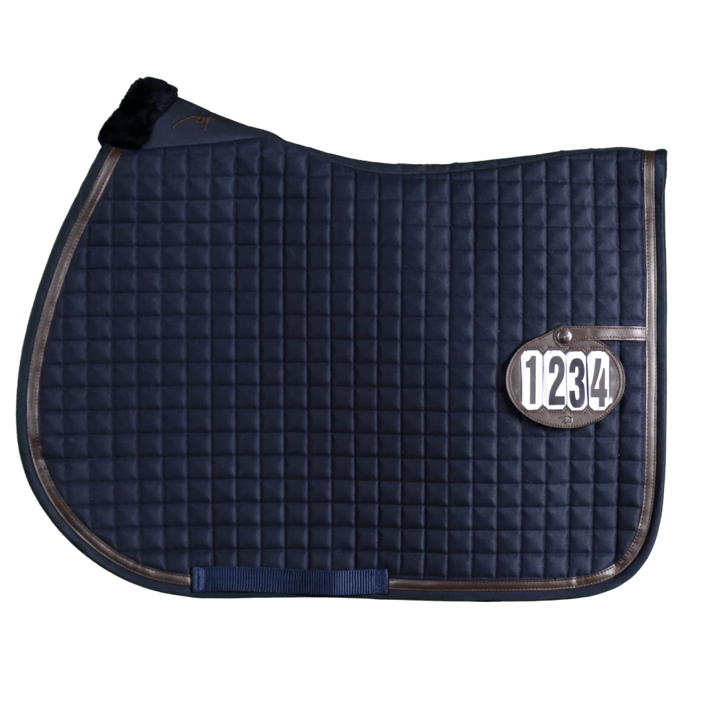 The jumping saddle pad HLA Classic by Dyon is a real innovation! It has a patented system to attach a starter number directly to the saddle pad. The system consists of a narrow leather strap with a snap fastener so that the numbers always stay in place and cannot fall off. The square quilting has a shock absorbing effect and gives the saddle pad a classic look. A patch of fur is attached at the withers, which prevents friction and pressure points and increases comfort for the horse. A girth loop allows the saddle to be securely fastened and provides additional support without slipping. The simple design of the saddle pad is enhanced by a decorative leather band.