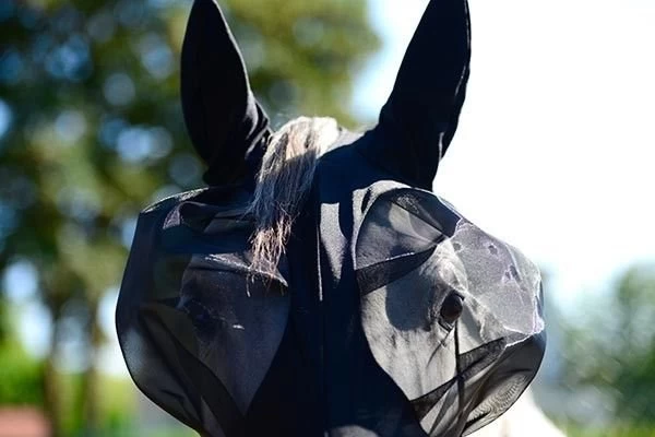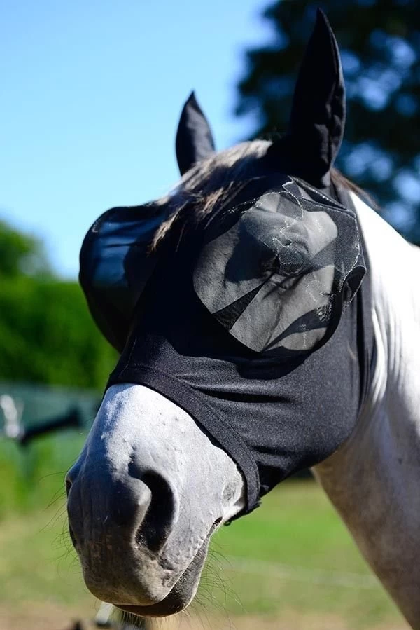 The Slim Fit fly mask by Kentucky Horsewear not only looks great, but also has some features and functions to offer. The lycra fabric the fly mask is made of provides a perfect fit and protection for the horse. So it is no problem if the horse wears the fly mask for a longer period of time. The material is also breathable and durable, which makes it easy to wear on warm summer days. The special feature of the fly mask are the extra strong mesh eyes, which prevent irritation of the horse’s eyes, as they do not touch the eye. If they should be pressed inwards by an action of the horse, they come out automatically. The fly protection has a zipper, a snap fastener and an opening for the mop of hair, so the fly mask can easily be putted on.