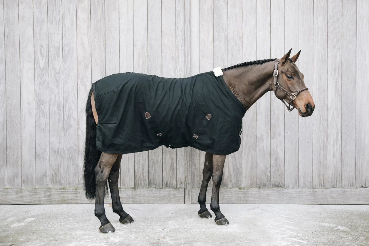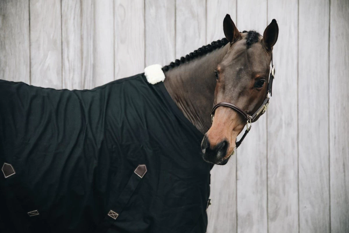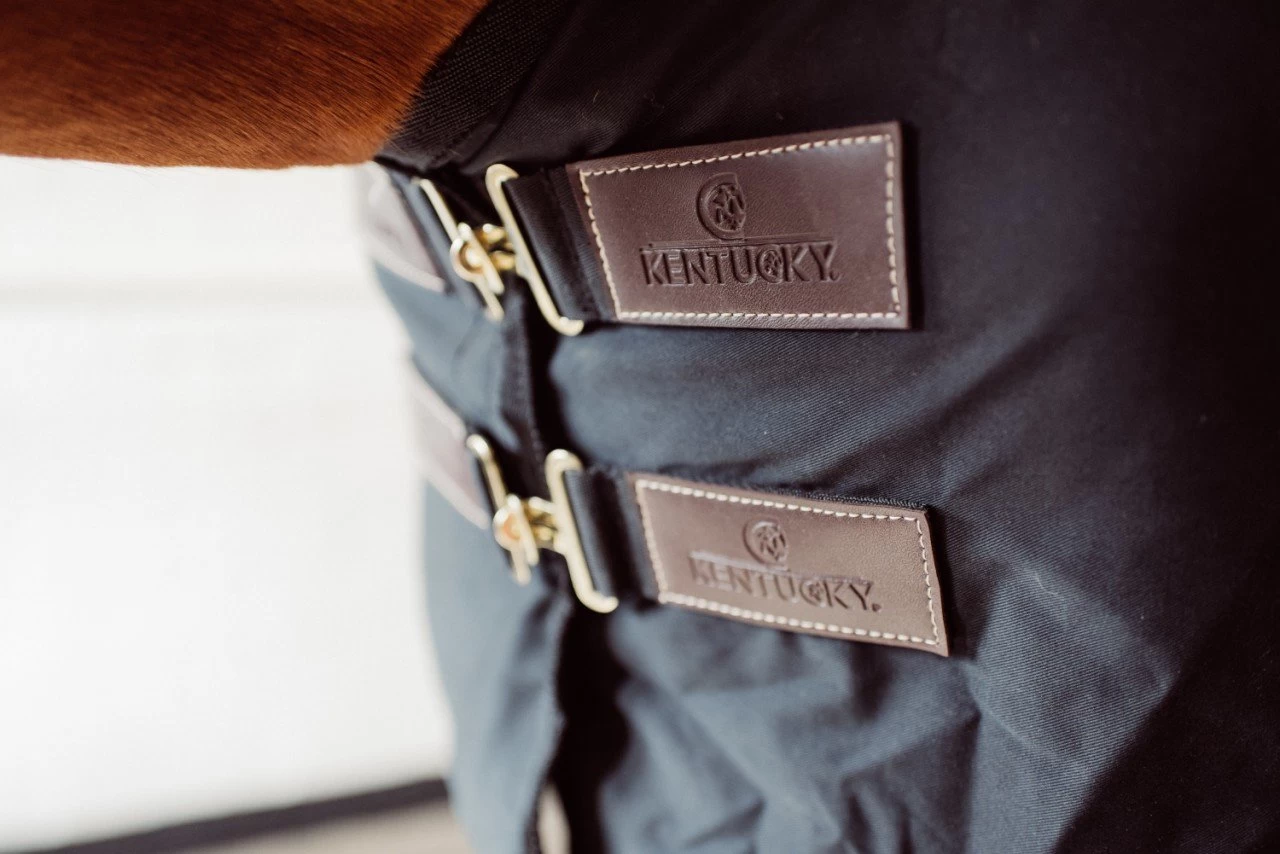 The Cotton Sheet horse rug by Kentucky is the ideal rug to make the horse feel comfortable in summer or during transport. It offers maximum comfort thanks to its perfect fit and the artificial sheepskin at the withers. The Cotton Sheet is made of an extra strong polyester/cotton blend. With the Kentucky logo and the brown synthetic leather on the straps it not only offers maximum comfort but also a chic look. The cotton rug has a double closure at the front and two cross straps reinforced with imitation leather. The rubber cord is removable and has a plastic cover that is easy to clean.