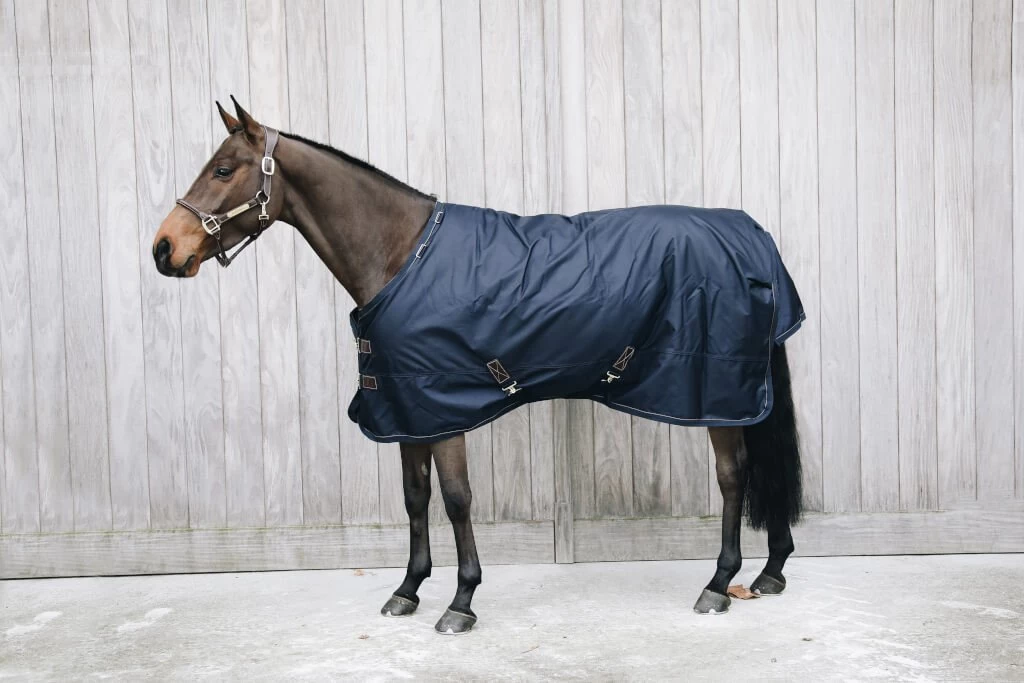 The Turnout Rug All Weather Pro by Kentucky Horsewear is an outdoor rug with 160g filling for rainy and cold days. The outer material of the rug is made of polyester and a waterproof PU coating. The surface of the blanket is furthermore dirt-repellent and particularly robust. The filling forms a kind of insulating layer to retain the horse’s body heat, but is still breathable to prevent sweating under the rug. The artificial rabbit fur inside the blanket increases comfort and makes the coat shine. Also, thanks to the filling, the rug is moved back to the correct position after any slipping, for example when rolling and additionally minimizes the risk of chafing. To prevent water from entering the rug on rainy days, a seam in the back area has been deliberately omitted. To open and close the rug, there is a cross strap, a removable tail cord and a double closure in the horse’s chest area. The all-weather blanket can be combined with a Kentucky Horsewear neck piece.
