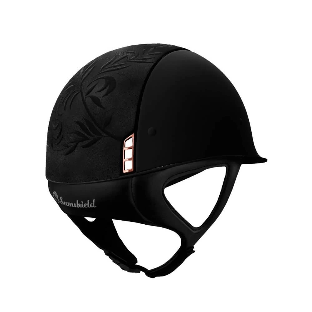 Samshield Riding Helmet Classic Shadowmatt Top Flower Embroidery Trim Matt Black Blazon Pink Gold