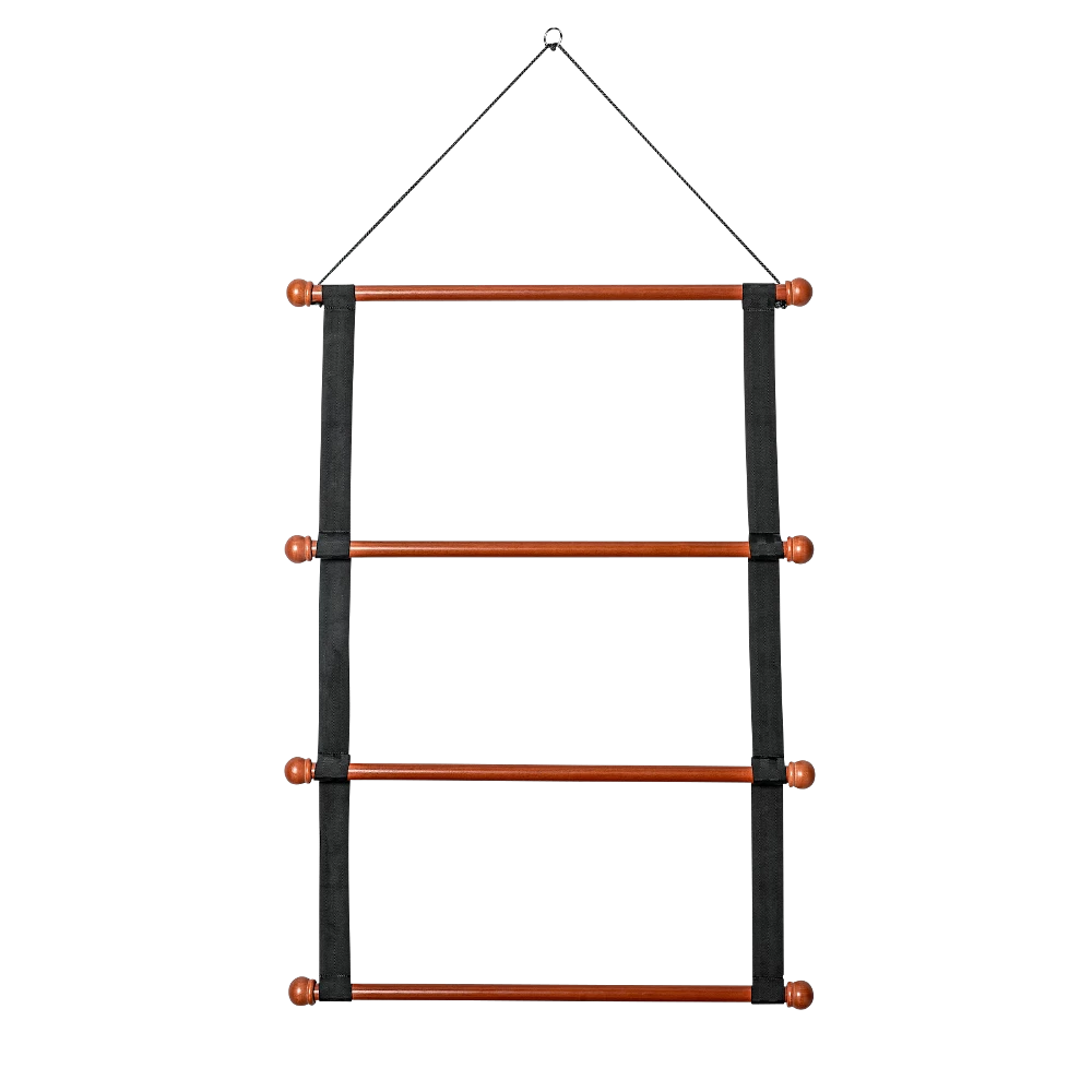 The high-quality saddle pad holder Racky from the brand Equiline is made of quality wood and resistant, water-repellent polyester fabric elements. The shackle holder is available in two different colours and can be attached easily and safely by means of a stainless-steel ring. The holder is functional and shapely and offers space for 4 saddle pads.