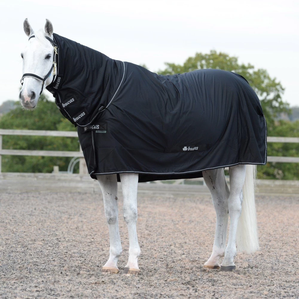 This great blanket by Bucas can be used as a cooler, transport blanket or as a light stable blanket. The inner lining of the blanket consists of the Bucas Stay-dry material, which is 2 layers. In the shoulder area, the blanket has a “silk-feel” lining, which prevents chafing. In addition, this blanket saves a lot of time and the annoying turning over, as it is very versatile. The blanket also has antibacterial properties, which means it stays fresh and in good condition for longer. To close it, the blanket has a T-buckle with a magnetic snap-lock and cross straps on the inside. This fantastic blanket also has a neck part and a 0g filling.