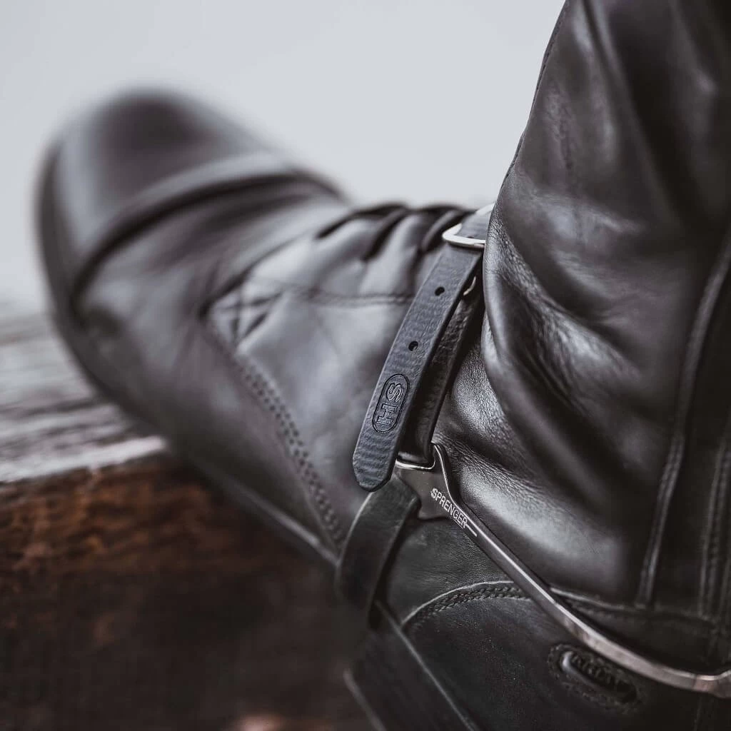 The HS Sprenger spur straps are made of Biothane. The easy-care, bacteria and mold resistant material is durable and water resistant. The vegan material is also flexible in cold weather, so the spur strap can also be used in winter without any problems. Thanks to the stable buckle, a simple attaching and adjusting of the spur strap is possible.