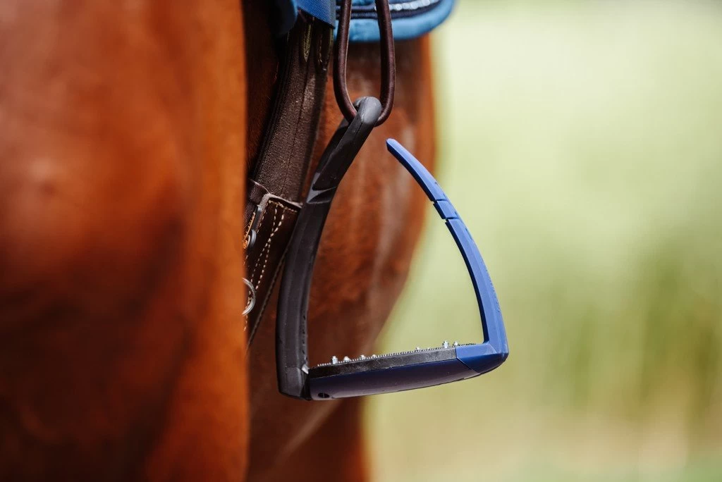 The Soft’Up Pro+ stirrups by Freejump are made of spring steel, which is sheathed in Elastollan®, and Ixef®1022 (glass fiber reinforced polyacrylamide) on the foot plateau. The outer arm is made entirely of Elastollan® and ensures a high level of safety, as it opens under the traction of the foot in the event of a fall, should it get caught in the fall. Thanks to an open eyelet, which has an angle of 45 °, you can easily insert stirrup leathers and have an optimal foot position. The foot plateau is very wide, so that one has a secure grip in the stirrup and does not slip even during fast riding or a jump.