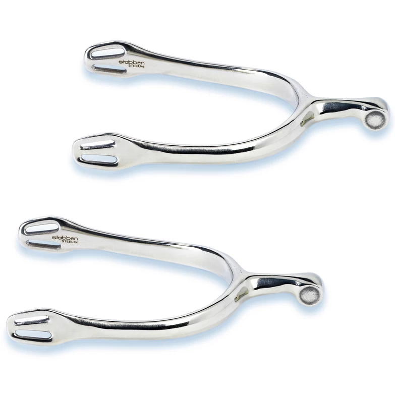 The “Dynamic” spurs from Stübben are perfectly suited for dressage. The elegant design makes the spurs a real eye-catcher and makes them look very noble! The special feature of the spurs is the V-shape, which gives them a better fit on the boot, which is supported by the function that they can be individually adjusted to any size. The flexible and unbreakable stainless steel is very robust and stands for longevity. Due to the offset strap eyelet you have a comfortable fit, so it is no problem to wear the spurs for a longer period of time. With these spurs you have made the perfect choice and found an effective and precise support for riding, which you will soon not want to do without!