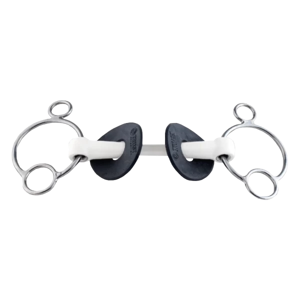 The “Inno Sense” range of dentures, in addition to the leather and the “sweet iron” range, completes the Trust range. These dentures are made of food-safe plastic and therefore contain no softeners or toxic substances. This type of bit comes with 4 different mouthpieces, which differ in shape and hardness. The flexi soft material of these dentures is very soft and flexible because it is made of elastic plastic and a flexible metal core. Due to the special properties of this material, the teeth are soft and the pressure is evenly distributed. The side discs prevent the lips from getting trapped and thus contribute to the comfort of the dentition. The 2.5 rings provide the rider with numerous buckling possibilities, which can increase or decrease the leverage effect. For this reason the use always requires a calm and sensitive rider’s hand.
