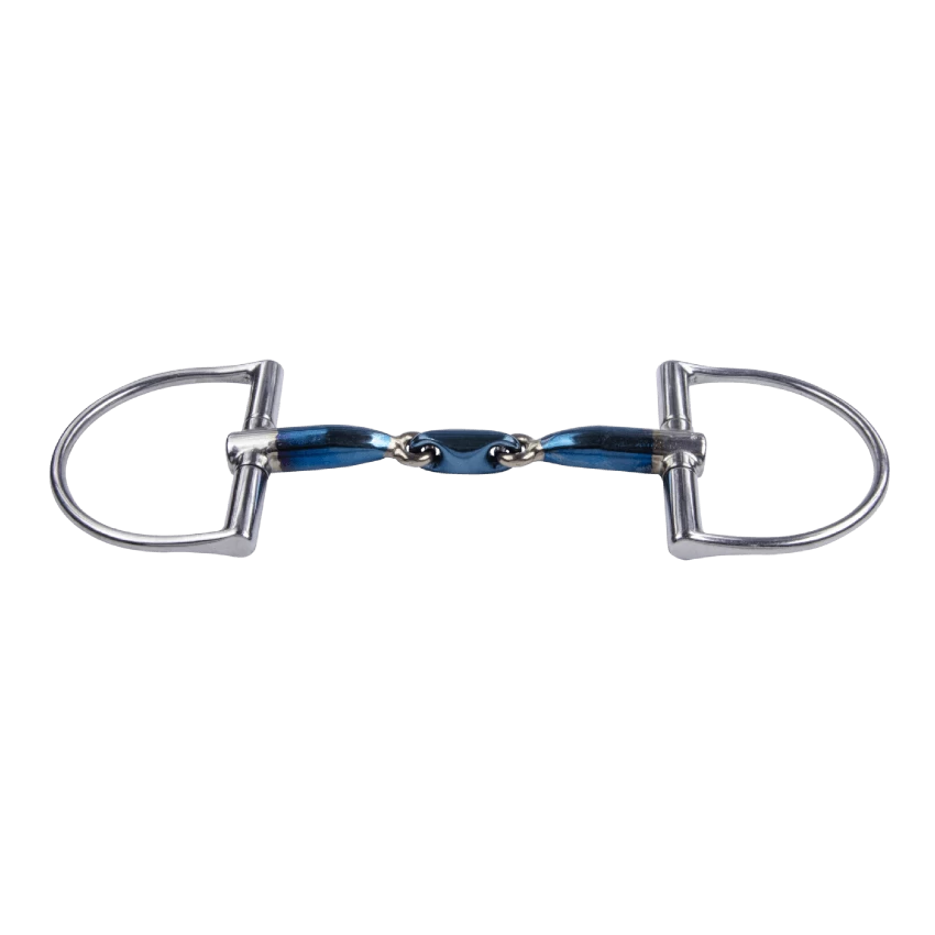 The double broken Sweet Iron D-Ring bit by Trust is ideal for young and sensitive horses. The double-broken mouthpiece lies loosely in the mouth and distributes the pressure on the loads, the tongue and the corners of the mouth. For horses with a narrow lower jaw, it should be noted that the hinge points can press on the loads. The D-shaped side pieces limit the horse laterally and help with bending and stance as they put pressure on the cheeks. The mouthpiece promises high acceptance due to the anatomical shape and the special alloy, which forms sweet-tasting surface rust with moisture.