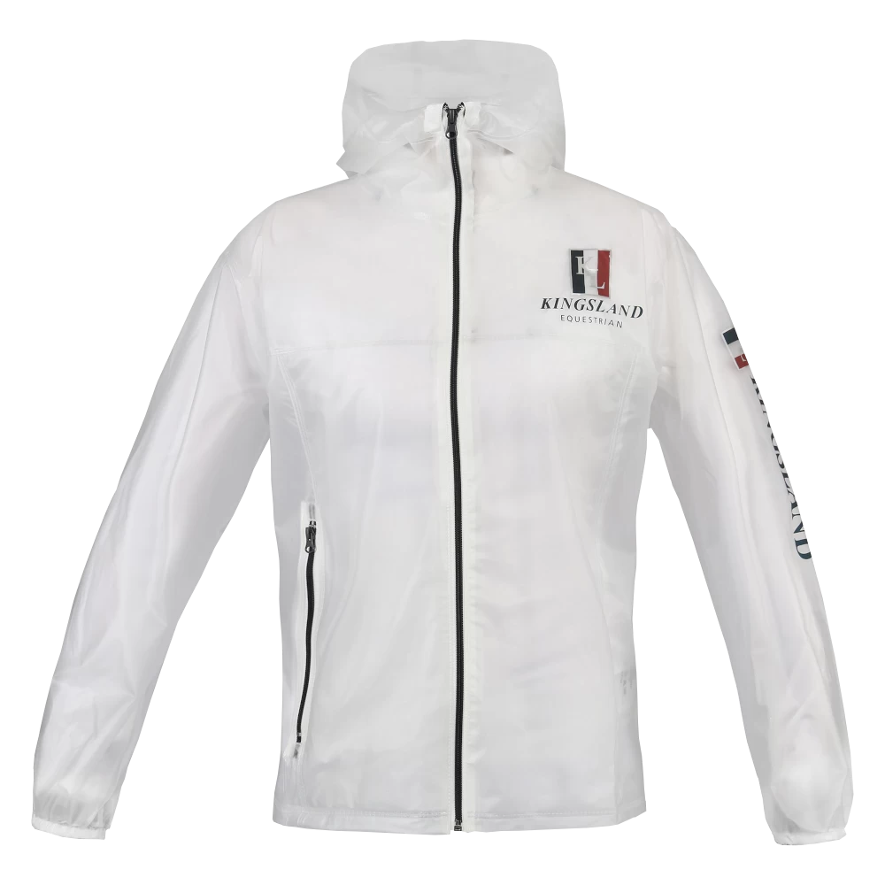 The transparent rain jacket from Kingsland can be worn by both men and women. It is ideal for changing weather conditions and can be put on quickly and easily thanks to the zip. The seams are extra welded, which makes the jacket waterproof and offers optimal rain protection, whether at the tournament or during training at home. The ventilation holes under the arms ensure good air circulation and prevent heat build-up. The large logo lettering along the left sleeve is an eye-catcher. Another eye-catcher is the smart logo patch on the chest. All in all, this jacket is a practical riding utensil that no stable should be without.