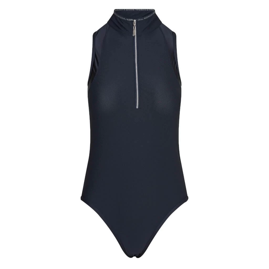 The sleeveless bodysuit IRHSuperstar is a limited edition model by Imperial Riding from the spring/summer collection 2022. The used synthetic materials give the rider a particularly comfortable feeling as they are breathable, elastic and quick-drying. In order to be able to put the bodysuit on and take it off quickly and easily, there is a crotch closure with small press studs and a zip in the area from the chest to the collar. The practical thing about a bodysuit is that nothing can slip up, which makes it much more comfortable to wear. An eye-catcher is the small stand-up collar, which has Imperial Riding lettering.