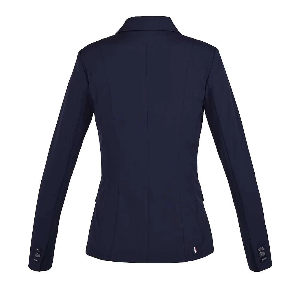The Classic women’s competition jacket by Kingsland combines many functional features with a sporty and elegant design. Due to the 4-way stretch fabric, the rider retains maximum freedom of movement, as the jacket is particularly elastic. On the sleeves and on the front are elegant buttons, which are provided with the company logo. The tailored cut makes the jacket very figure-hugging and feminine. The softshell fabric is also breathable, quick-drying and water and dirt repellent. An eye-catcher is the logo embroidery on the right pocket. Thanks to the many practical features, this jacket is the ideal companion for the upcoming tournament days.