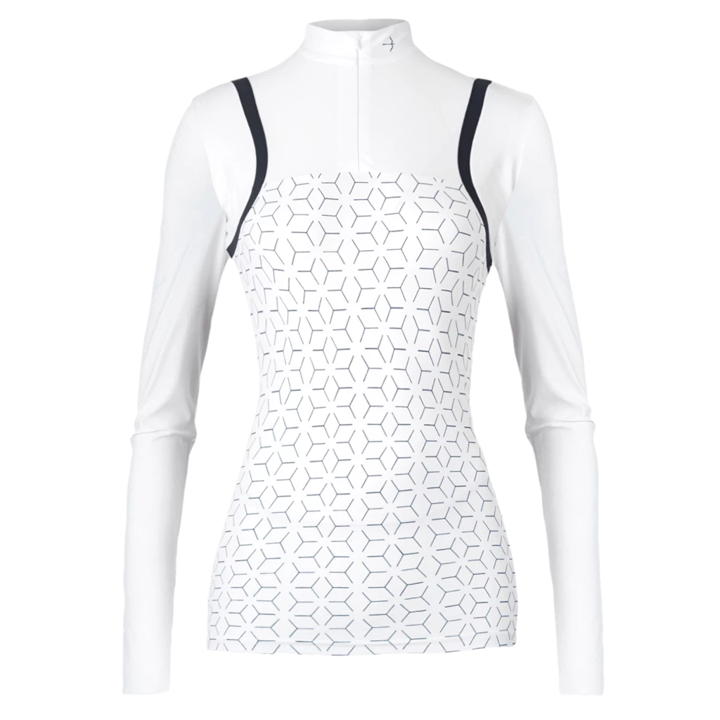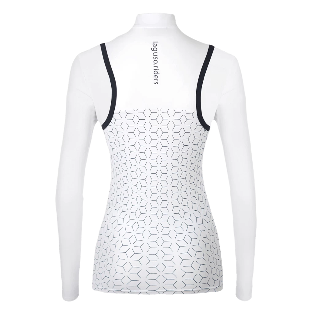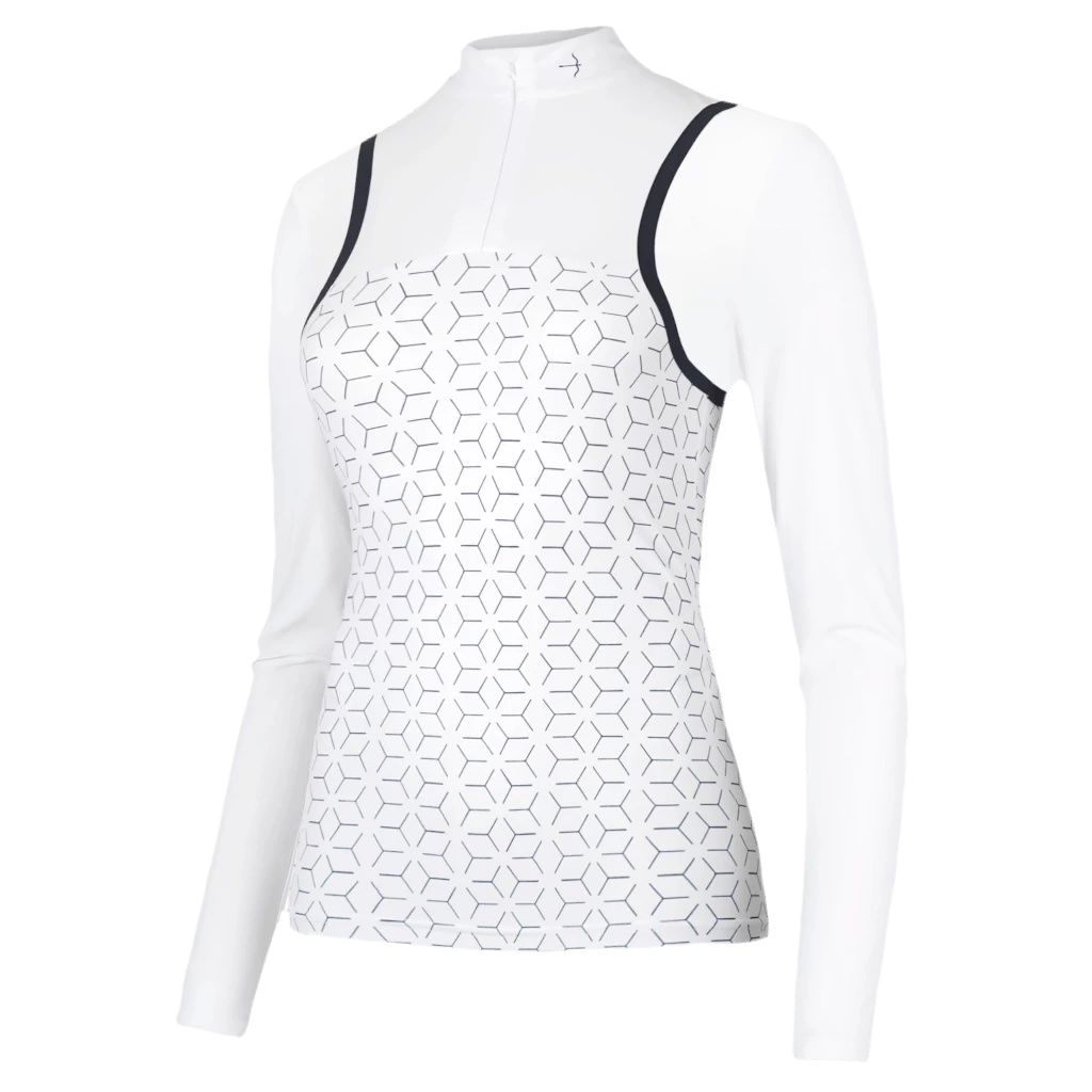 The Laguso competition shirt Savanna Allover is part of the fall/winter 2022 collection. The shirt speaks for itself with its functional features and sporty design. It is breathable, quick-drying, ultra-lightweight and lint-free which makes it very comfortable to wear. In addition, it offers a sun protection factor 50, as it has long sleeves. Easy and fast putting on and taking off is made possible by the stand-up collar with zipper and underlaid lip. Visually, the shirt also makes a nice sporty image. It is decorated with the allover print on the front and back as well as dark colored details in the shoulder area. The stand-up collar also features the typical Laguso logo while the Laguso lettering can be seen between the shoulder blades. The competition shirt Savanna Allover makes every outfit at the competition sporty and a special eye-catcher.