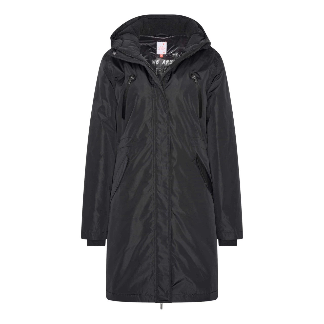 - the parka is decorated with a reflective logo print on the hood and on the left side seam