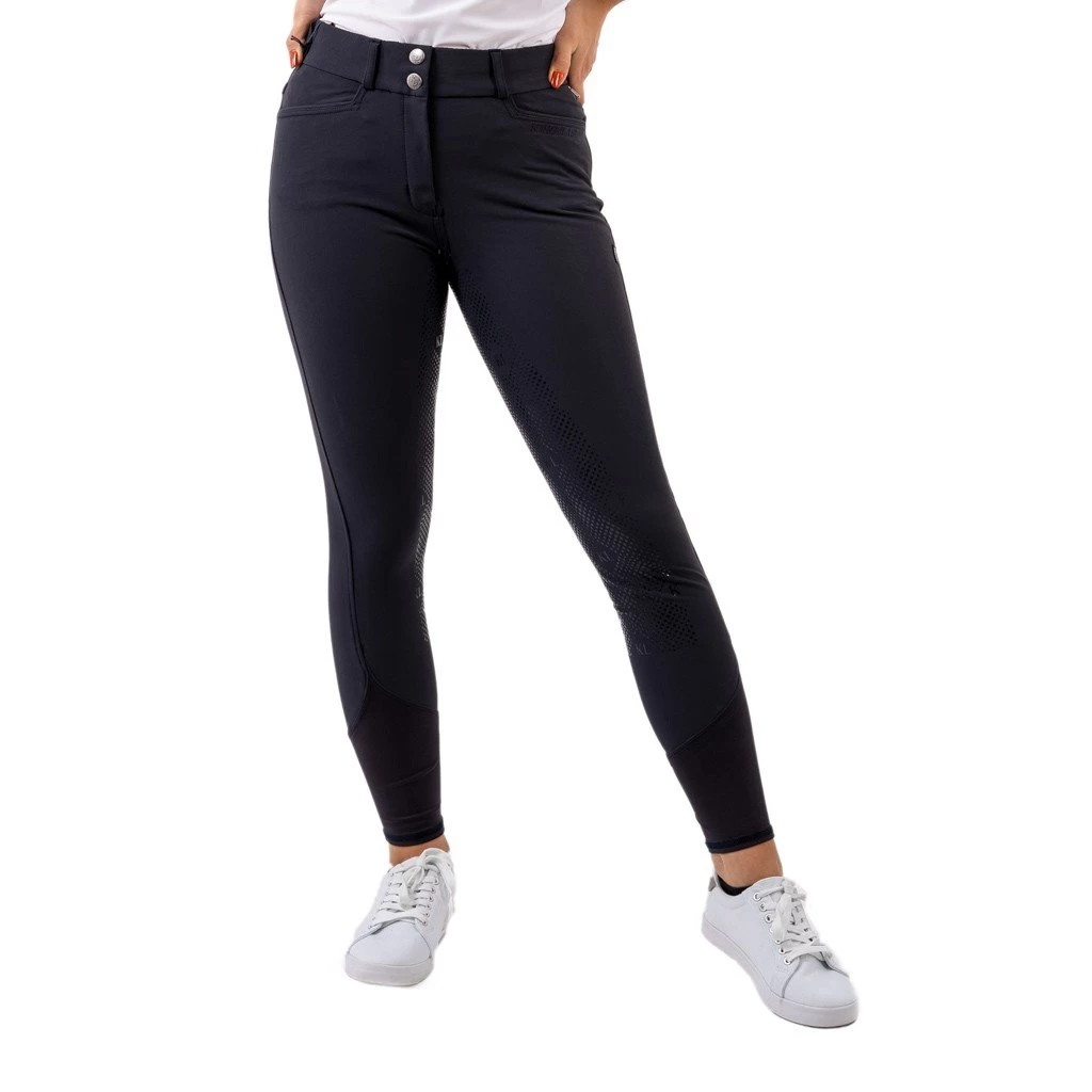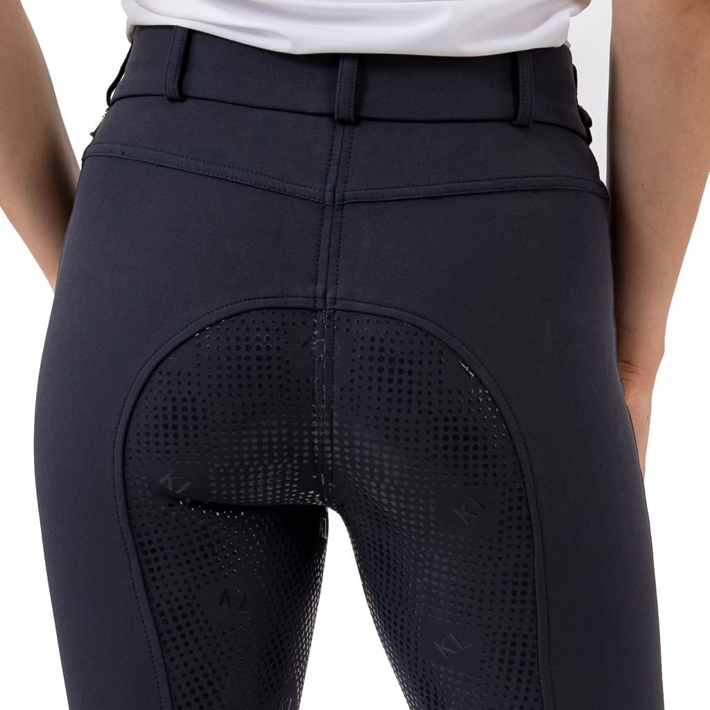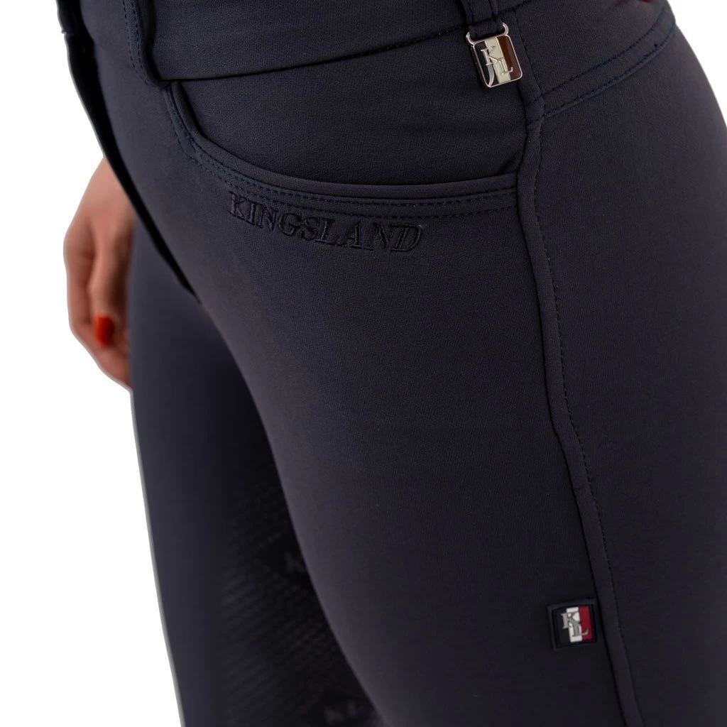 These breeches from Kingsland are equipped with a wide waistband and two buttons on the front. The material with 4-way stretch guarantees great comfort and an optimal fit. The material is also water-repellent, dust-repellent and breathable. This makes the breeches perfect for training and tournaments. The full grip ensures a secure grip in the saddle. Thanks to the elastic leg ends, the breeches can adapt perfectly to the calf and ankle area. This prevents uncomfortable rubbing in the riding boot. The breeches look very classy due to the two pockets on the front that are decorated with piping. The breeches are decorated with the Kingsland logo on the left thigh. The beautiful appearance is rounded off by the Kingsland lettering below the left hand pocket.