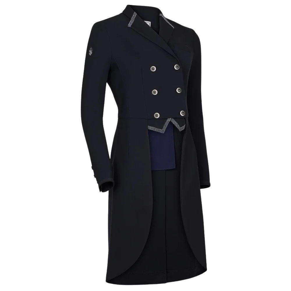 The tailcoat “Crystal Fabric” consists of innovative and light material, which is highly breathable and elastic. The inside of the tailcoat is made of elastic fabric and mesh material to ensure excellent air exchange without restricting mobility. The material also has an integrated sun protection, so that you can wear the tailcoat even on warm summer days without any problems. Crystal Fabric Swarovski® is attached to the collar, back and front lapels, giving the tailcoat a particularly elegant look, making you the star of every show and perfectly rounding off your riding outfit.